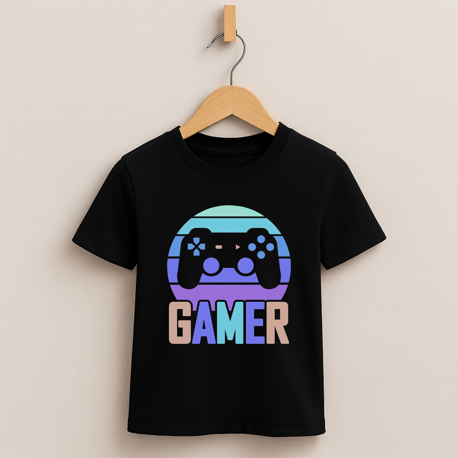 Perfect for the little gamer in your life! The Gamer Sunset kids tee combines fun retro vibes with modern gaming style — featuring a bold controller graphic set against a colorful sunset gradient. It’s a look that every young player will love and every parent will feel good about.