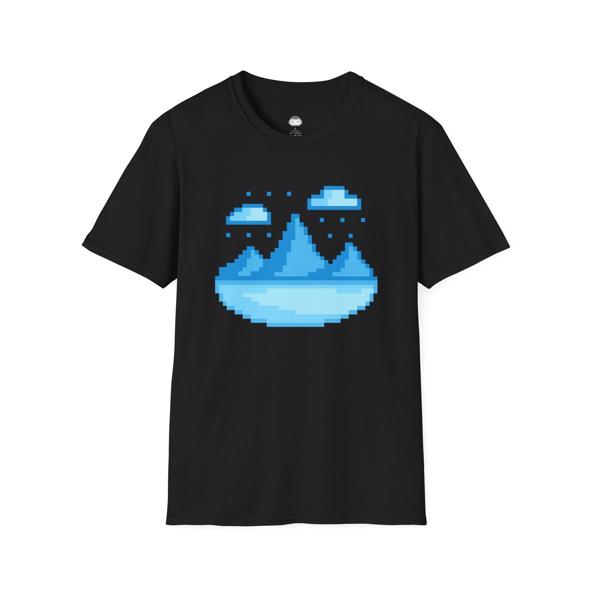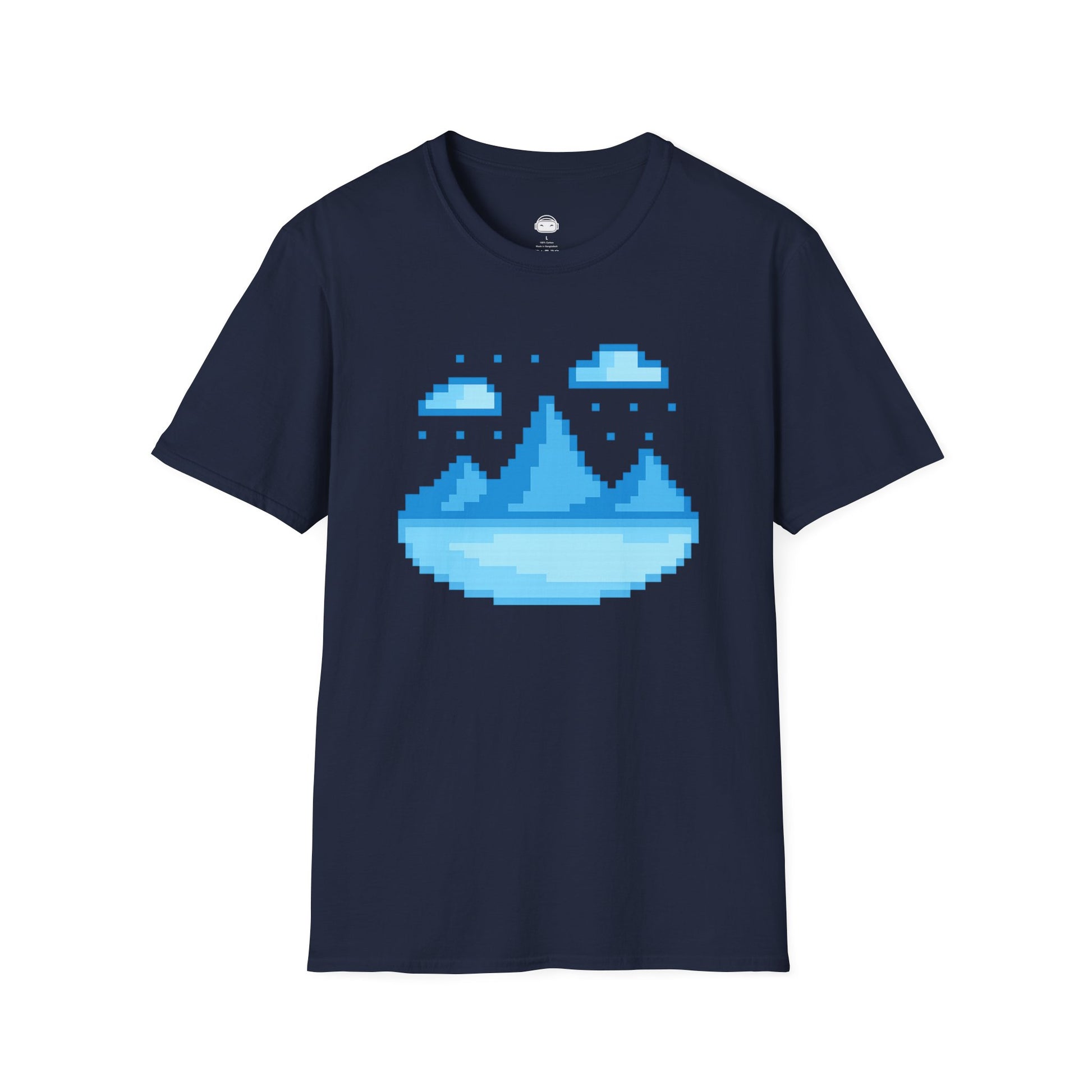 Press pause and take in the view. The Pixel Horizon tee captures that nostalgic retro-gaming vibe — a calm blue pixel landscape of mountains and clouds that looks straight out of an 8-bit adventure. Minimalist yet full of character, this design channels classic game aesthetics with modern style.