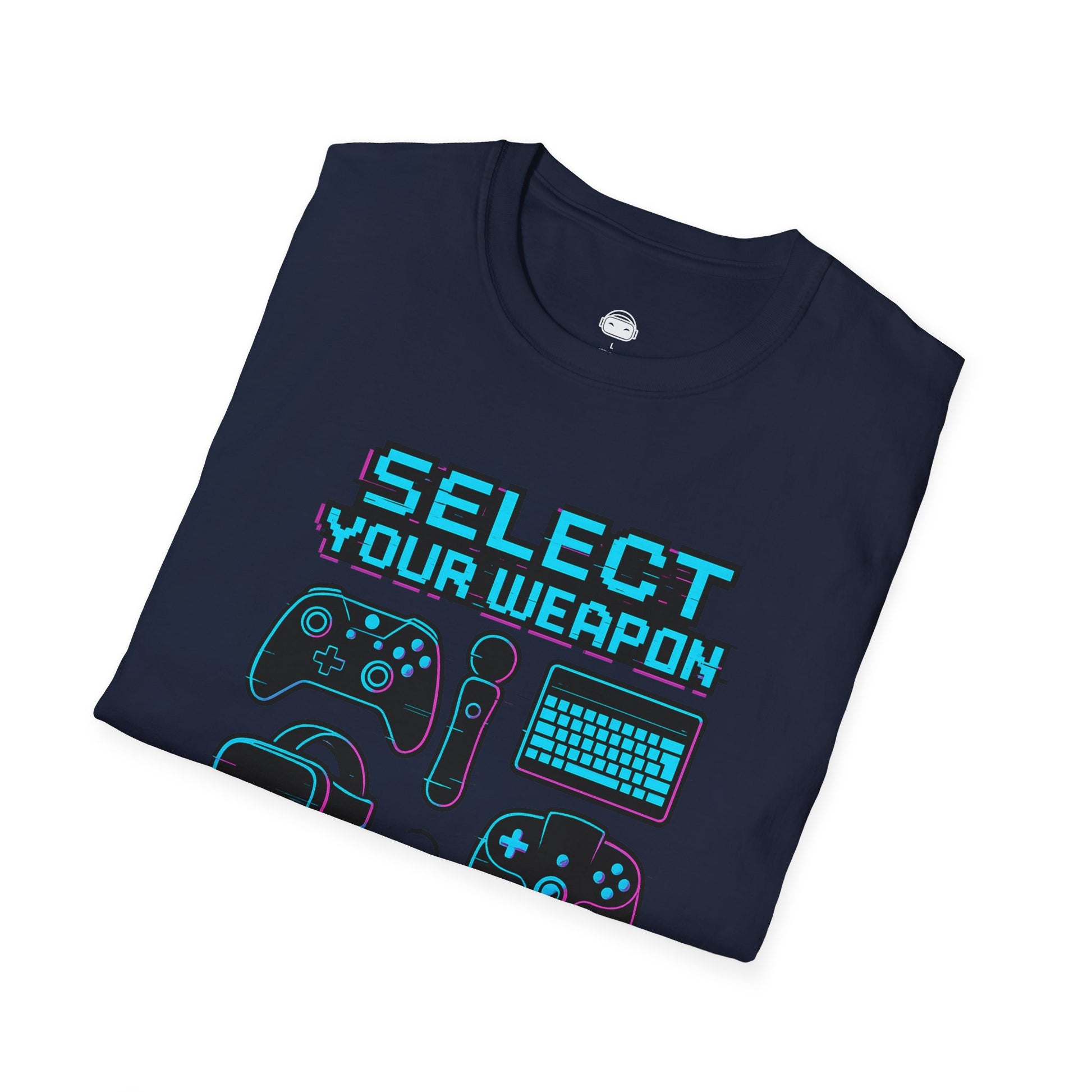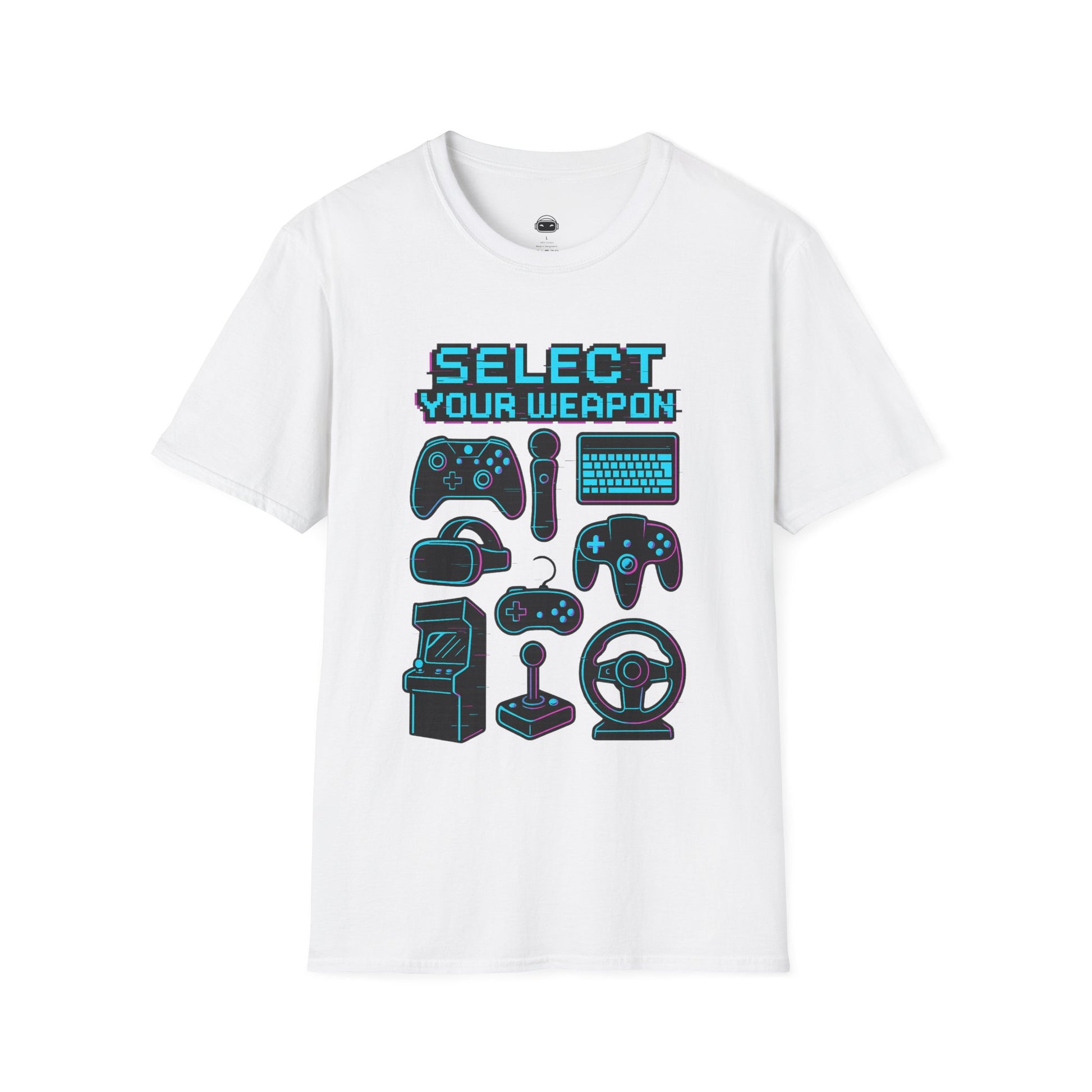 Select Your Weapon – Neon Glitch Gamer T-Shirt - Gaming Lifestyle T-Shirt