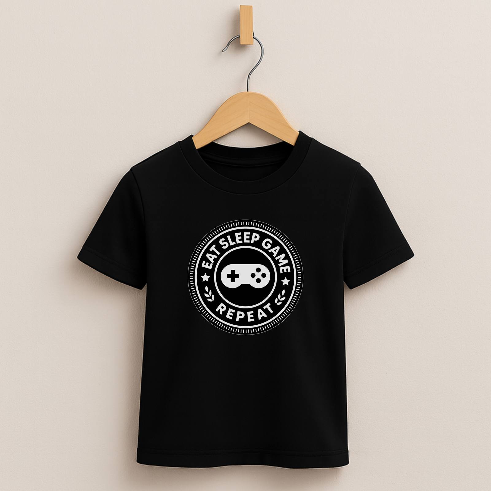 For the kid who lives and breathes gaming โ€” this one says it all! The Eat Sleep Game Repeat tee captures every young gamerโ€™s daily routine in a bold, modern badge-style design. Simple, stylish, and instantly recognizable, itโ€™s a must-have for kids who love to play and parents who love a shirt that lasts.