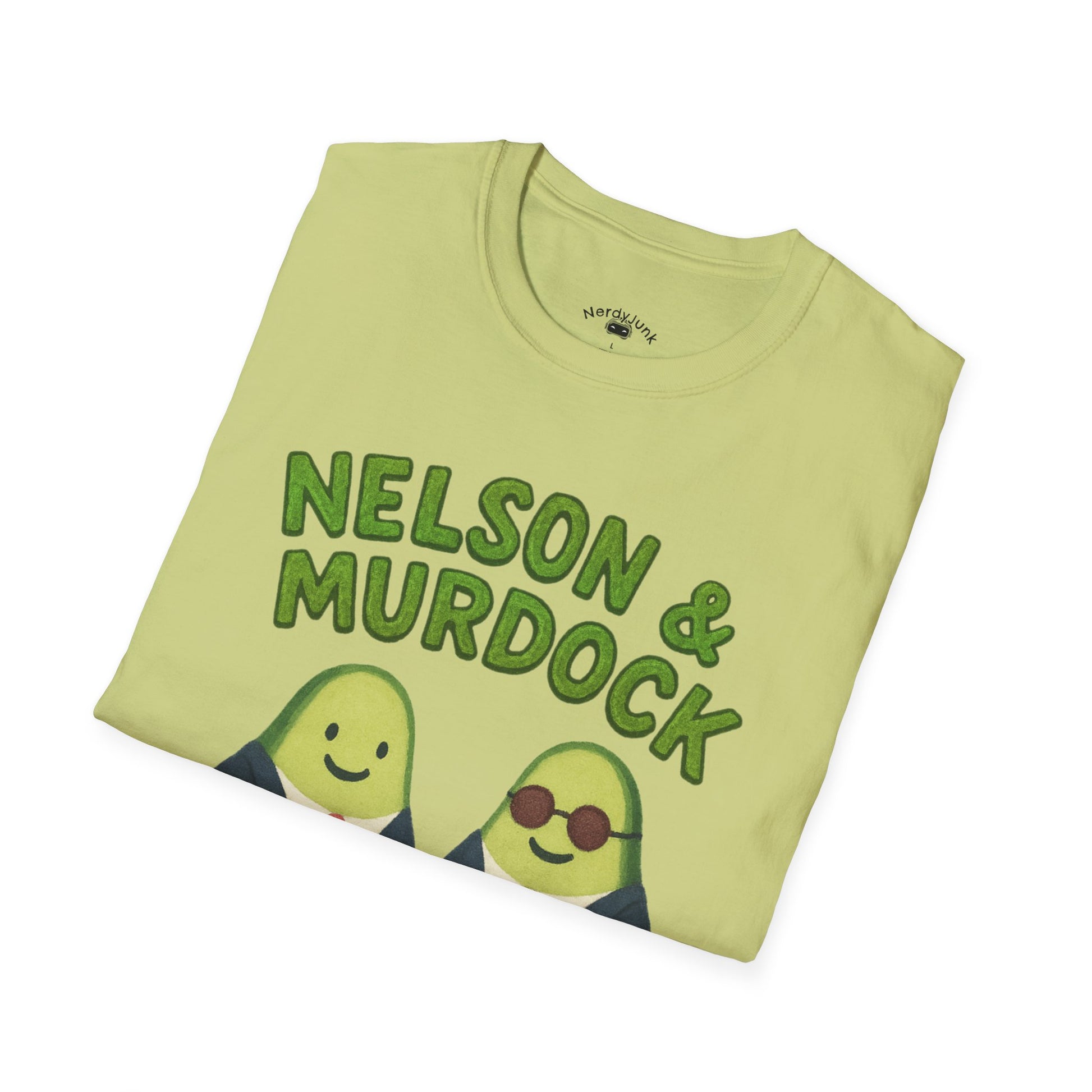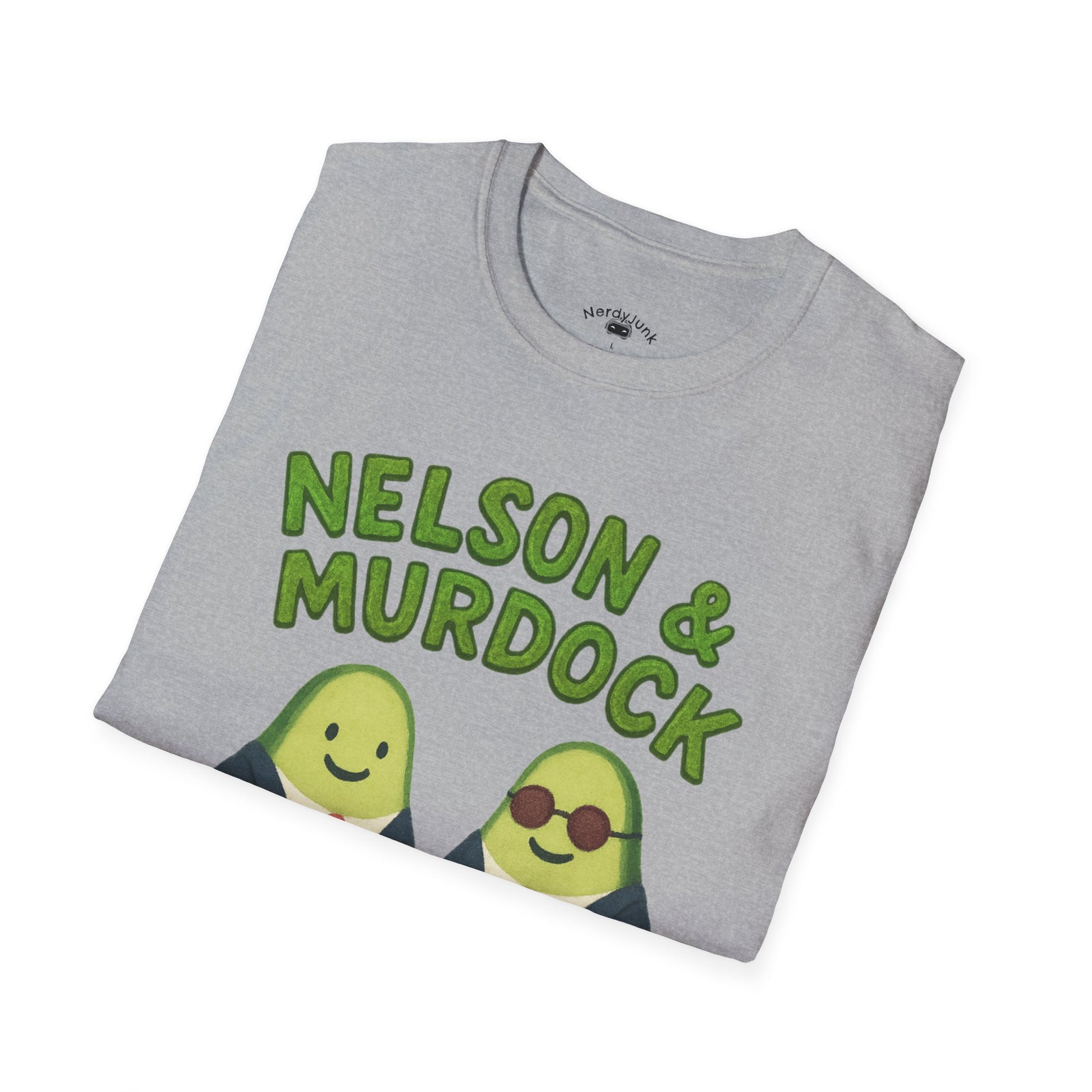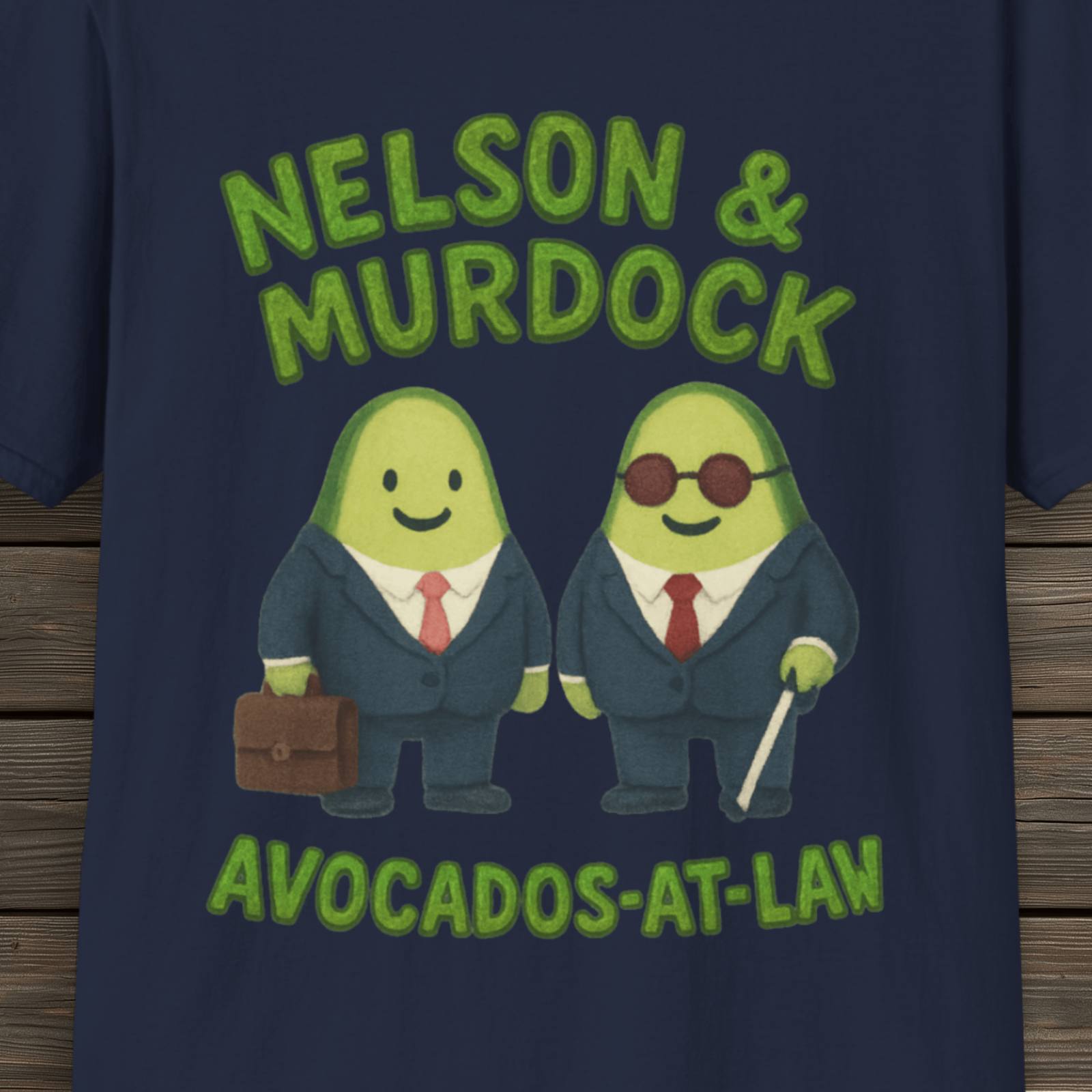 This playful design reimagines a certain iconic law partnership as two suited-up avocados, complete with tiny ties, briefcase, and shades-and-cane combo for a subtle nod to a very familiar vigilante attorney. The hand-drawn style keeps things light and charming, while the bold “Nelson & Murdock – Avocados-At-Law” text ties the whole parody together. A fun, nerdy piece for fans of the legendary Hell’s Kitchen partnership —with a lighthearted twist.