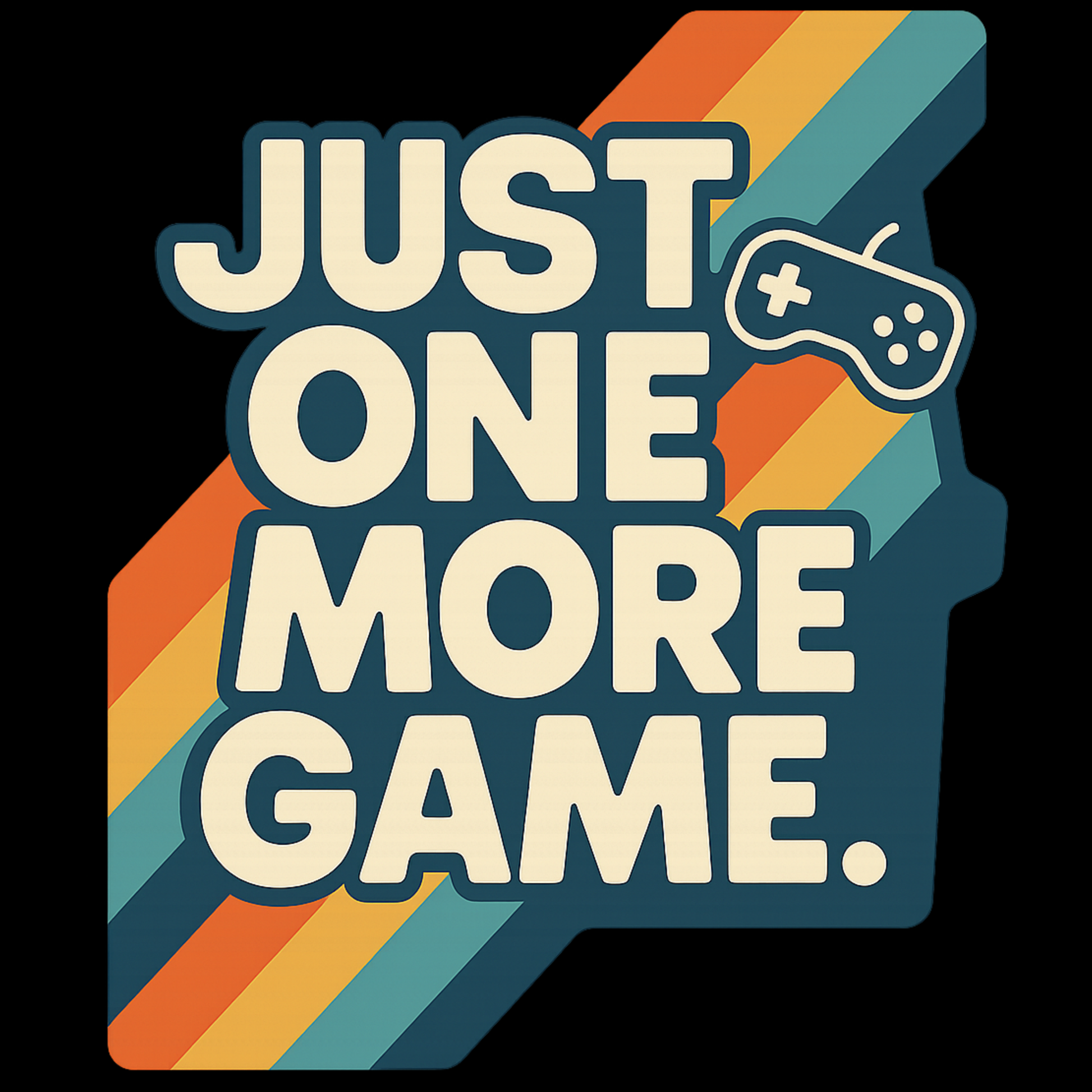 For the gamers who always hit “Continue”, this one’s for you. The Just One More Game tee brings a nostalgic twist to the eternal gamer mantra, blending bold vintage typography with classic 80s-inspired diagonal stripes. The warm retro palette and clean controller graphic make it the perfect mix of old-school cool and modern gamer pride.